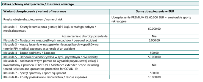 – ubezpieczenie KL + NNW